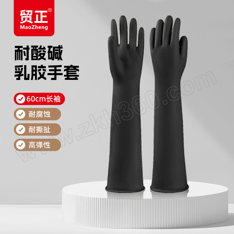 MAOZHENG/贸正 加厚耐酸碱工业乳胶手套 MZGY-60 均码 黑色 长60cm 1副