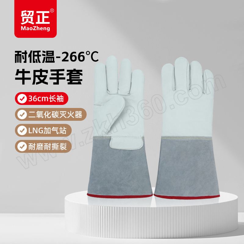 MAOZHENG/贸正 牛皮耐低温防液氮手套 MZS-DW03 均码 灰色 长36cm 1副